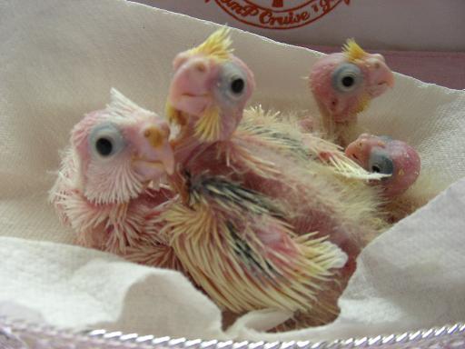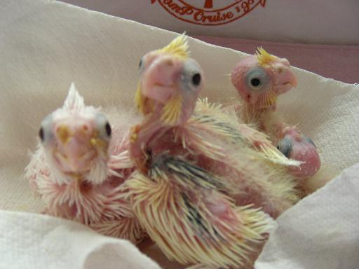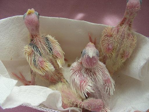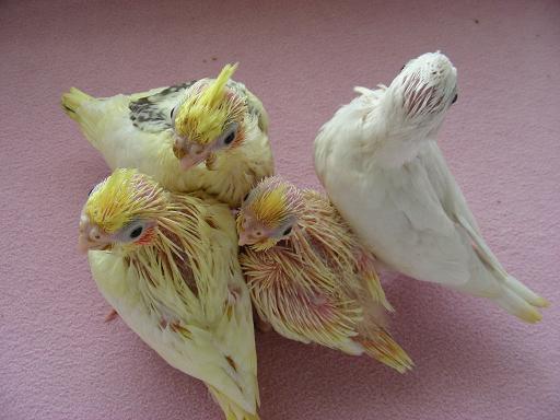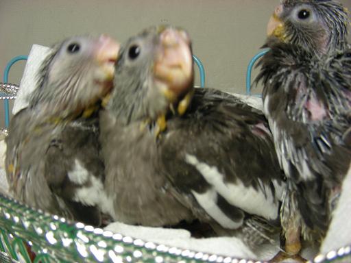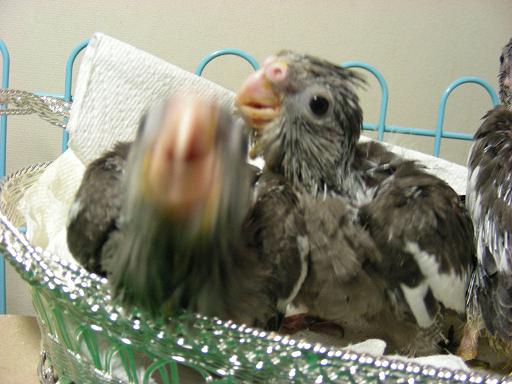 腰の右側に1枚グレーの羽があります、まだ挿し餌1回です。