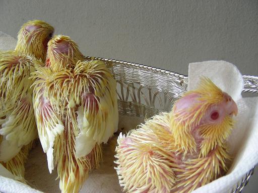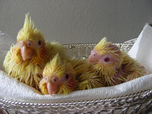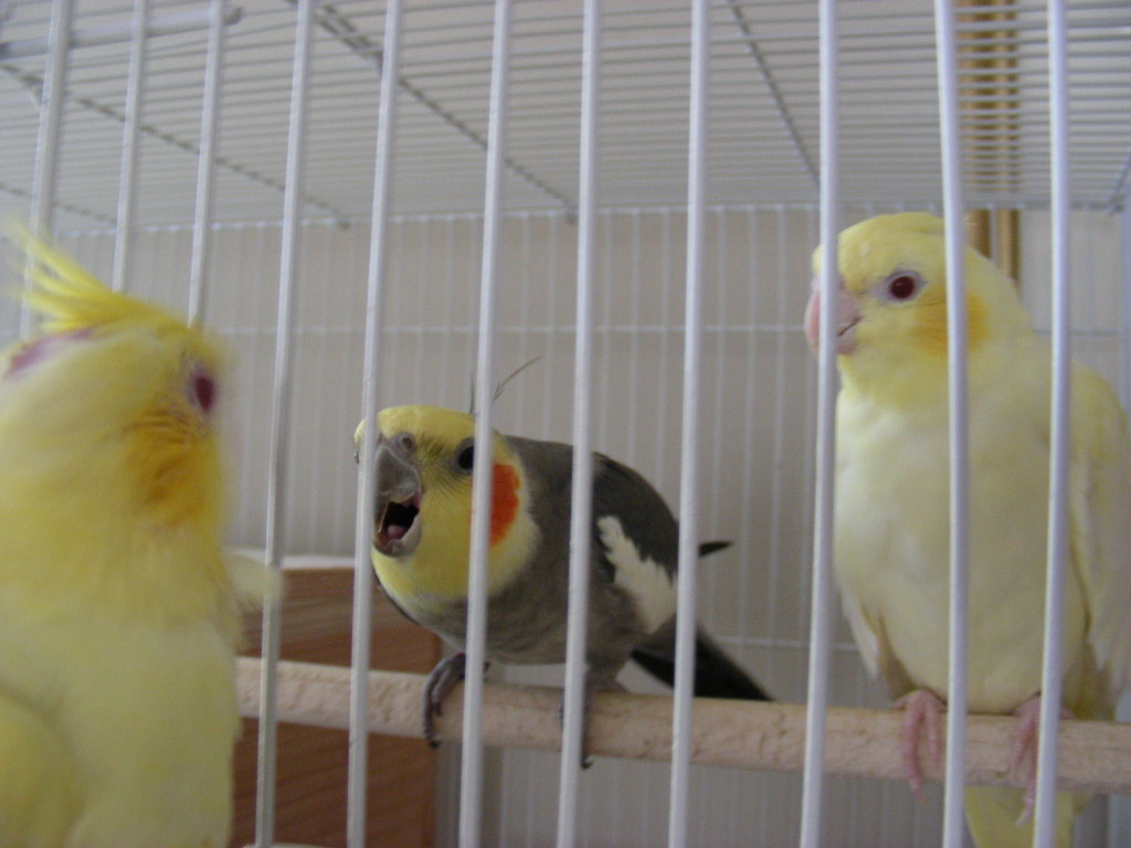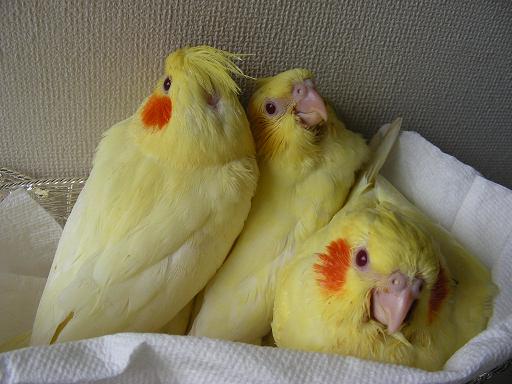 でも一般的に白オカメといわれるルチノーとは違って3羽とも黄色。