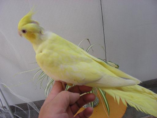 YFファローパールです、大部屋雑居中に首の羽を抜かれてしまいました。